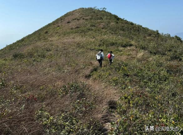 霍启刚带着棒球帽,穿着橙色的冲锋衣,始终走在队伍最后。